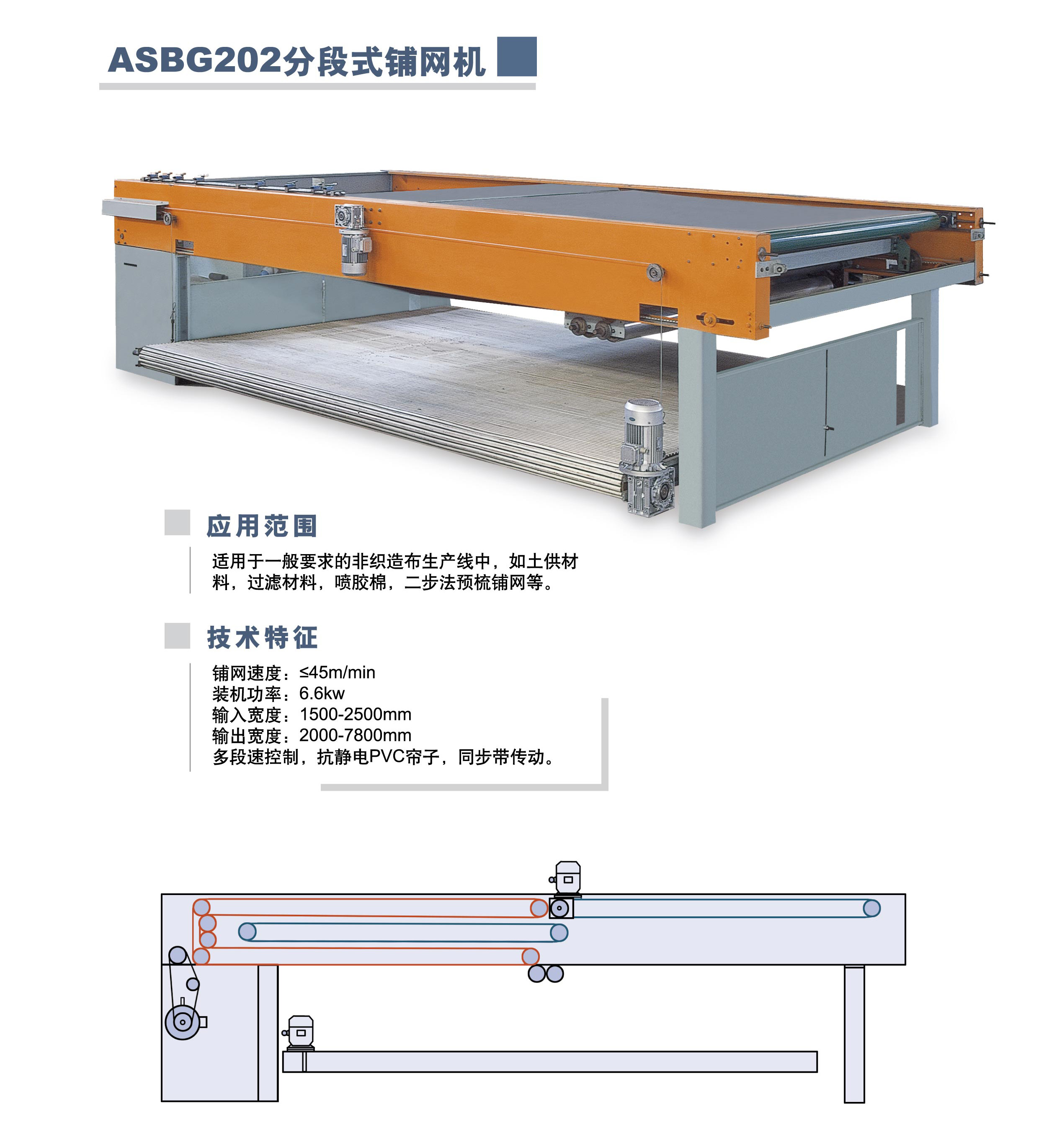 This machine is used to fold and spread the fiber net out of the carding machine into a multi-layer wool net with a certain width and thickness for the next working procedure.